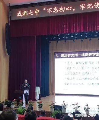 “宵迥星河灿,风微羽卫扬。” 天高地迥,星河灿烂,星空的浩瀚与博大总能够引起我们内心深处的感动。 仰望星空,我们感受到自身的局限与渺小;但也正是因为仰望星空,我们向往着伟大与浩瀚,才能不断突破自我,超越极限。 星河讲坛,群星璀璨。他们的思想,熠熠生辉;他们的讲述,娓娓动人;他们的情怀,浩瀚博大。他们如点点星辰,凝聚成河,彰显精神的力量。 No.1 让愉快教育点亮我们的课堂 ↑曾贤明老师《让愉快教育点亮我们的课堂》 曾老睿智幽默,自信洒脱,在座的老师们在不断的笑声中学习到了让课堂变得有趣的方法。 No.2 像培养女婿一样培养学生 ↑胡春山老师《像培养女婿一样培养学生》 春山老师讲述的自己作为80后的成长经历,引起了大家的强烈共鸣;分享的班主任岗位上“像培养女婿一样培养学生”的师生相处方式,则展现了他对“推己及人”这样儒式理想的躬身实践之路。其爱生情感之真挚,育生思维之创新,让听众为之折服。 结语 星月皎洁,明河在天,讲坛留声,声入心间。
