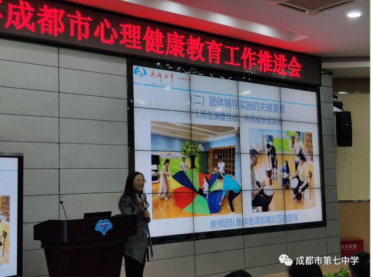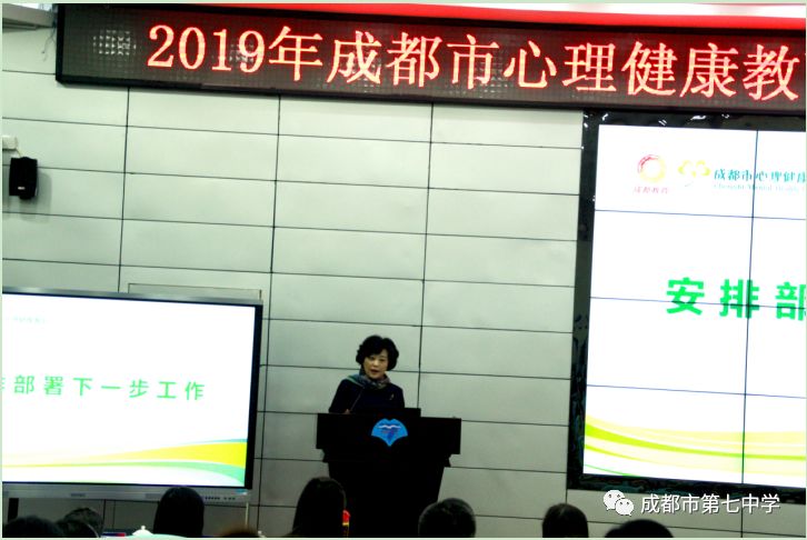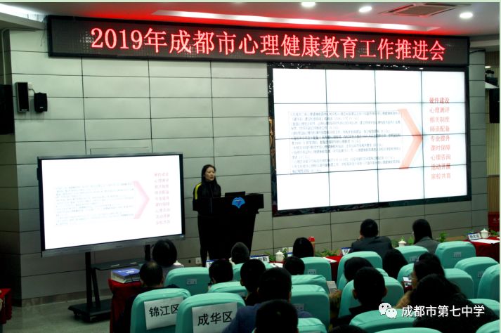 切实行动 静待花开 ——成都市心理健康教育工作推进会圆满举行 2019年11月26日,成都市心理健康教育工作推进会在成都七中(林荫校区)顺利召开,专家学者、校长教师齐聚七中学术厅,交流共享心理健康教育的工作成果与经验,共同解读、学习《成都市中小学心理健康教育发展规划(2019-2022年)》。 会议由成都市教育局德育与宣传教育工作处处长杨忠斌主持。会议开始,杨处长首先介绍了莅临本次会议的嘉宾领导,向各位参会的嘉宾、领导和老师们表示了热烈的欢迎,并就本次会议的主要目的与内容作了简要介绍。会议第二部分,各心理健康特色校和区域代表就心理健康教育工作的经验进行交流报告。 成都七中陈艳萍老师以短视频向大家展示了七中心理课的课堂缩影,从心理健康教育的多种形式和团体辅导实施的关键要素两个方面进行了分享。她将七中特色的“1+12”团体辅导模式带到大家面前,将美学与艺术融入心理健康教育,打造不同系列的特色课程内容,如积极心理学、心理资本、身心舞动等等,向参会人员呈现了让师生共同成长的特色模式及工作成果。未来,七中也将继续探索和建立团体辅导的新模式,以助学生更好地成长。 都江堰市七一聚源中学何永康校长从学校特色课程开发、工作机制建立等方面进行了阐述。介绍了学校因“5·12”大地震引发关于生命的思考,从而开创的关于生命教育的特色心理课程——“三棱五色”。何校长分享了学校将红色文化结合心理健康教育,以培养学生使命感和责任感的实践课程;讲解了学校坚持科研引领,课程建构和制度保障的具体工作过程。他表示未来学校会引入园艺,继续以“三棱五色”课程,育生命教育之花。 锦江区教育局秦梅副局长回顾了锦江区过去心育工作的丰硕成果和丰富经验。从构建“标准+督导”的工作机制,完善“专业+全员”的教师队伍机制建设,创新“基础+示范”的推广机制和建设“个体+集群”的科研机制四个方面进行了梳理,对锦江区进行咨询室标准化,心理工作评估考核,建立“一站三中心”,开展主题教研和赛课,以及创办特色品牌“心雨梦工厂”等等工作进行了汇报总结,期望未来能够继续深化构建四个机制,全区域推进心育工作上新台阶。 成都师范银都小学张俊勤副校长将“每一间教室都是心理辅导室,每一位老师都是心育工作者”的理念带到会场。她分享到,特色的小班化教育能够更好地发挥学生的主体作用,提高心理健康的教育效能,因此学校在各班营造温馨的文化氛围,形成有效的制度文化,甚至首创抽屉式沙盘,以关注每一位学生的健康成长,从而切实地做到关注个体差异,进行针对性培养教育。 郫都区教育局党委委员刘成勇回顾总结过去的经验与成果,就工作方法和制度建设进行了分享。现实催生积极思考,郫都区通过教育研讨会、学习分享会等形式,开始试点探索积极教育,让学校的管理态度、老师的职业情绪和教育的关注方向发生了改变,形成了良好的家校关系和工作模式。为全面推进积极教育,发布了积极教育规划,主要从目标建立、团队组建、方法创新三个方面落实相关工作。他表示,希望推行的积极教育能够持续发展,继续点亮学生的幸福人生。 紧接着,西南大学心理健康中心主任郭成教授就《成都市中小学心理健康教育发展规划(2019-2022年)》进行了深刻解读。郭教授从社会现实谈到高度关注心理健康教育,发布相关规划,落实相关工作的重要性与必要性。随后,郭教授提出“以心理健康教育为载体,推动教育观念和思想的变革;学校结合自身的文化,做出自己的特色;在班级中落实规划精神,在社会中寻求更多支持”等6个方面的问题,值得我们在实施规划的过程中加以注意和思考。最后,郭教授以“40%的中小学学生有心理问题,90%的中小学学生强烈渴望心理关注”这组数据进行了总结,“将规划落到实处,落实到每个学生身上,还有很长的路要走,但无论如何,最重要的是行动,只要用心去做,效果自然会水到渠成”。 成都市政府总督学、成都市教育局党组成员陈蕾从信心、示范和落实三个关键词,对成都市心理健康教育的下一步工作进行了安排部署。她谈到回望成绩,要有提升做好心理健康教育的信心,也要看到现阶段还存在的问题,在下一步工作中从家庭、学校和社会三条路径共同努力,线上线下同步进行,将三类课程、三级建设等“六个三”继续深化发展。同时,从多方数据来看,我市心理健康教育的整体水平位于全国的前列,未来要坚持优秀的工作方法,持续提高教师的钻研能力,深度挖掘和发挥心理辅导室的作用,建好也用好心理辅导室。除此之外,要全面落实规划,推进心理健康教育工作再上台阶。陈总督学也就此提出了新的要求,希望各区各校能认真学习践行规划,制定实施年度计划,明确各项工作措施,加大教师培养力度,并表示市政府和教育局也将对各校的心理工作进行督导评估。最后,陈总督学也特别强调要重视教师的心理健康,可以在招聘中引进心理健康测试,积极帮助教师排除压力和心理障碍,推动建构教师心理健康的落地落实。 会议最后举行了授牌仪式,成都七中等5个学校荣获“首批四川省中小学心理健康教育特色校奖牌”。 此次工作推进会在大家的掌声中圆满结束!“路漫漫其修远兮”,心理健康教育还有很长远的路要走,但正如郭成教授和陈蕾总督