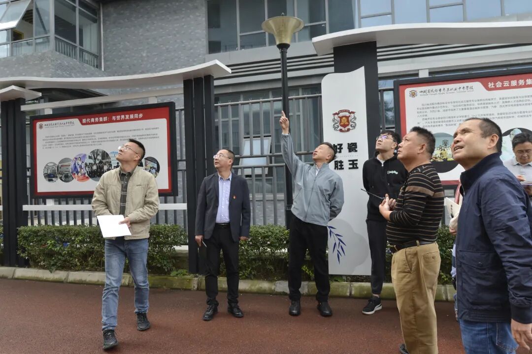 2023年10月13日,四川省成都市青苏职业中专学校在文康校区开展了智慧安防实景模拟演练活动。成都市青羊区教育局党组成员、机关党委书记高文,区教育局安全管理与应急处置科科长何剑和区教育安全服务中心主任赖勇等一行三人莅临学校观摩指导演练。