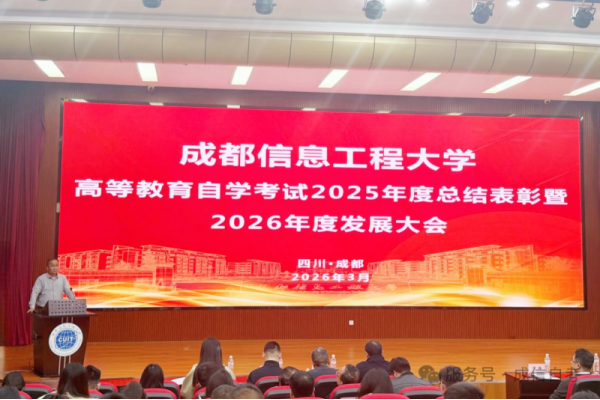 3月11日,我校召开“成都信息工程大学高等教育自学考试2025年度总结表彰暨2026年度发展大会”。学校国内合作处副处长徐俊、继续教育管理负责人李芳,继续教育学院党委书记易平、院长周鑫、副院长狄堃、自考科科长...