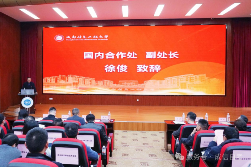 3月11日,我校召开“成都信息工程大学高等教育自学考试2025年度总结表彰暨2026年度发展大会”。学校国内合作处副处长徐俊、继续教育管理负责人李芳,继续教育学院党委书记易平、院长周鑫、副院长狄堃、自考科科长梁波,相关工作人员与校外教学点代表出席会议。会议由继续教育学院副院长邹靳主持。