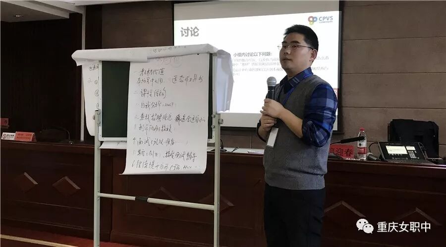 第二天由工作过程系统化专家信迎春老师主讲“职业院校课程开发”。信老师从职业教育的目标与课程开发入手,给大家讲解了学习情境选取与课程设计的核心、筛选原则及设计细化。接着,老师们分小组在课堂上基于行动导向进行了教学设计练习。经过激烈的讨论、分析,向讲师请教,最终将小组设计进行呈现。