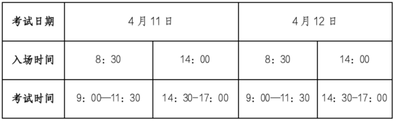 表2 考试时间安排表