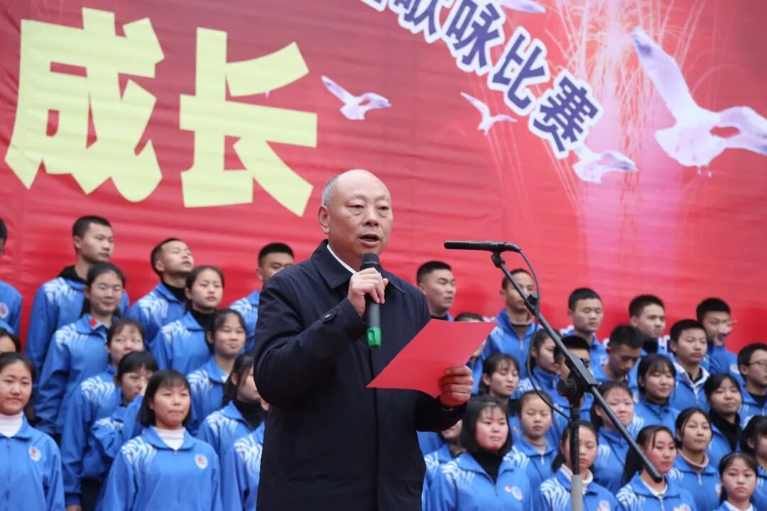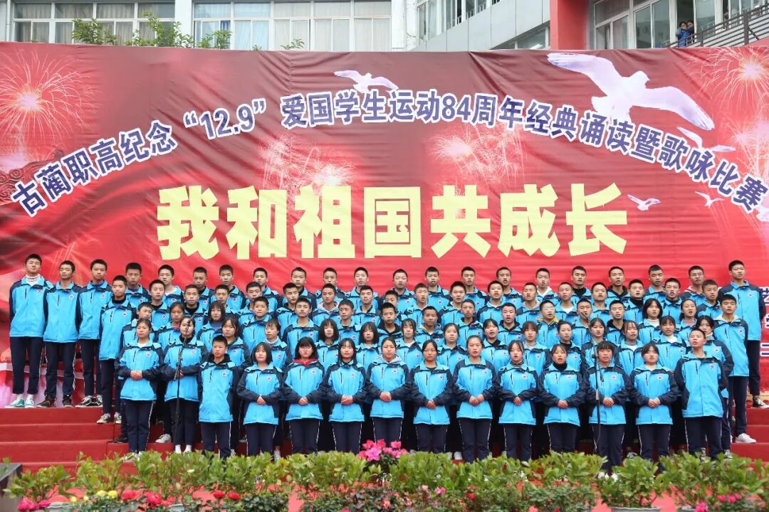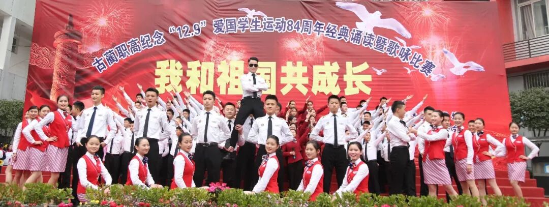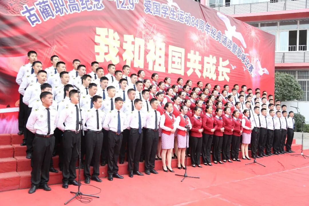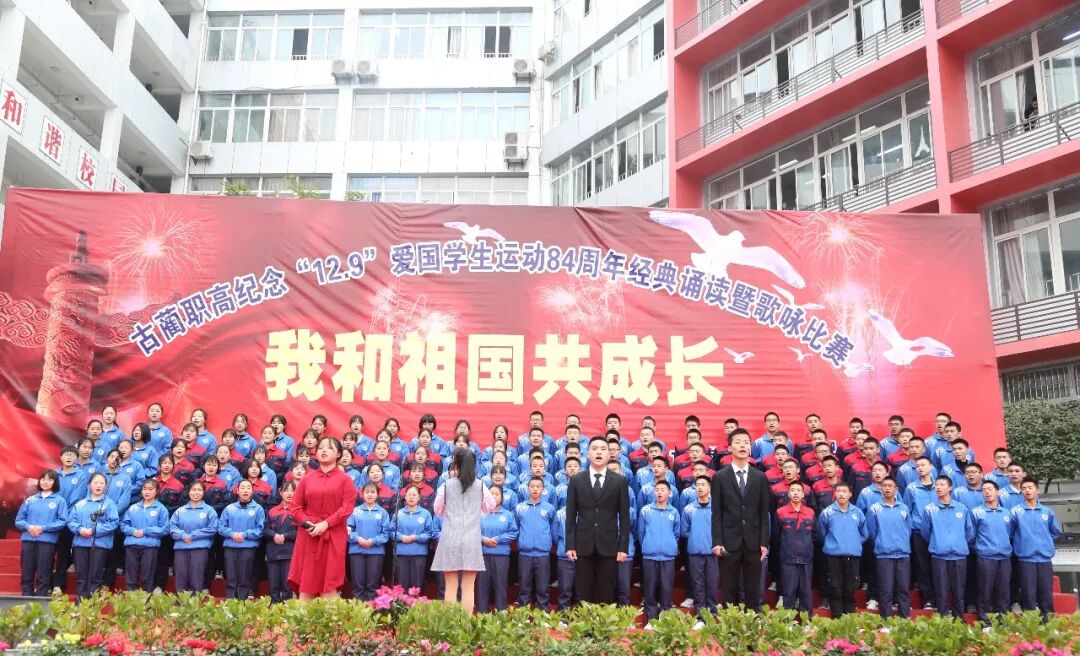 为大力弘扬爱国精神,加强校园文化建设,丰富学生校园生活,在“一二·九”爱国学生运动84周年之际,我校举行了以“我和祖国共成长”为主题的经典诵读暨歌咏比赛。 古蔺职高党总支书记、校长明祖宽讲话 主持人