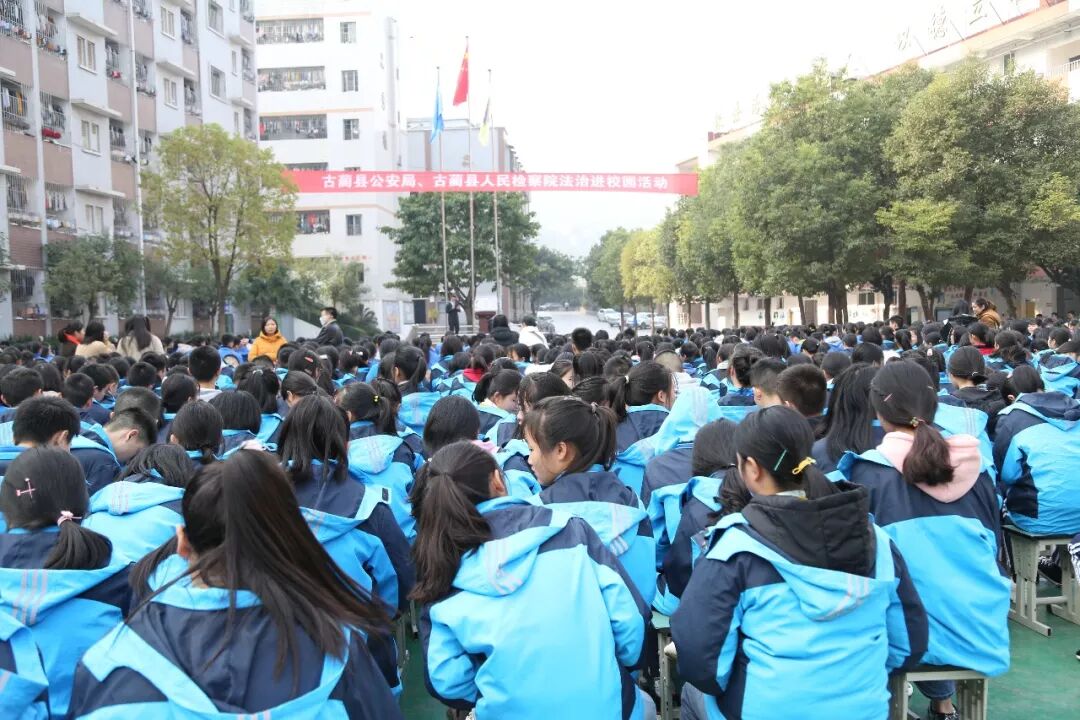 为了提高全校师生的法律意识,2019年12月9日,古蔺职高特邀请古蔺县公安局和古蔺县人民检察院到校开展法治进校园活动。此次活动由古蔺职高德育主任明杰波主持,全校5000余名师生共同参加。