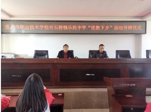 24日下午3点,由第六招生下组组长王尤光带领部分老师来到石桥镇乐民中学,召开“盘州市职业技术学校对石桥镇乐民中学‘送教下乡’活动”开班仪式。