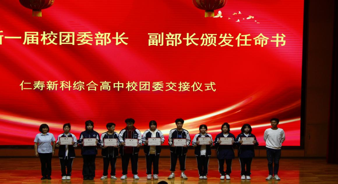 2023年10月14日,仁寿新科综合高中团委学生干部换届交接仪式在学术厅召开。