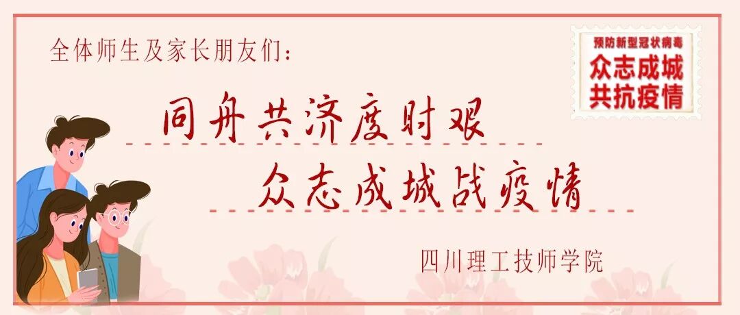 ●●● 致全院师生和家长的一封信 ●●● 全体师生及家长朋友们: 目前,新型冠状病毒感染的肺炎疫情形势复杂严峻,防控工作正处于关键时期。党中央、国务院高度重视,对疫情防控工作作出重大部署,全国上下众志成城。我院党委、行政把全院师生员工的生命健康摆在首位,把疫情防控作为当前最重要的工作,迅速行动,周密安排,从严落实,有序推进科学防控措施。 疫情发生以来,我院党员干部和有关部门同志放弃休假,冲锋在前,体现了“硬核”担当;广大师生积极参与,自觉在家不外出,不传谣,按时报告信息,助力构建起防控体系,成为战胜疫情的有力后盾。在抗击疫情的关键时期,大家齐心协力,共克时艰,为打赢疫情防控阻击战作出了积极贡献。在此,向所有不避艰险、奋进担当的老师们、同学们致敬! 众志成城,共克时艰!战胜疫情,没有一个局外人,大家都是生命共同体。为更好地保障全院师生员工的身体健康和生命安全,继续做好下一步防控工作,希望全体师生及家长朋友们进一步增强使命感和责任感,共同落实好关于疫情防控的工作要求,坚决打赢疫情防控阻击战。 一、提高政治站位 贯彻上级部署 当前,疫情防控是压倒一切的重大政治任务,是对我们增强“四个意识”、坚定“四个自信”、做到“两个维护”的现实检验。全院师生一定要充分认识做好新型冠状病毒感染的肺炎疫情防控工作的复杂性、严峻性,提高政治站位,强化政治自觉、思想自觉和行动自觉,坚决把党中央、国务院和省、市、区各项决策部署落到实处,以对广大师生生命安全和身体健康高度负责的态度,高度重视疫情防控工作。领导干部要以身作则,率先垂范,把抗击疫情作为“不忘初心、牢记使命”的实际行动,切实把做好疫情防控工作作为当前最紧迫的政治任务抓紧、抓实、抓好。党员教师要带头发扬“关键时刻站得出来、危急关头豁得出去”的精神,迎难而上,冲锋在前。 二、积极主动作为 加强自我防护 疫情防控期间,同时也是春季呼吸道传染病易发期,全院师生要自觉做好个人防护,主动增强卫生健康意识,了解疫情防控知识,合理饮食、规律作息、适度锻炼,提高自身免疫力。注意防寒保暖和个人卫生,勤洗手,外出戴口罩、咳嗽打喷嚏遮掩口鼻,废弃口罩按规定规范投放。避免到人群密集和空气流通不畅的场所活动,尽量减少出行、避免聚会,最大程度降低感染风险。从自身做起,从日常生活点滴小事做起,影响带动家人共同做好防护。 全院师生应根据自身情况检测体温,如有异常应戴口罩及时到政府指定医疗单位就医,并告知班主任及学校。 三、切实服从指挥 遵守各项规定 1.全体师生要严格遵守中央、居住所在地和学校关于疫情防控的各项决策部署,按照相关要求落实好疫情防控的每一项措施。 2.积极遵从教育部教育系统疫情防控视频会关于校园管理“5个一律”的要求,即:未经学校批准,一律不准返校;师生进入校门,一律核验身份、检测体温;校外无关人员,一律不准进校门;对发烧咳嗽者,一律实行医学隔离观察;不服从管理者,一律严肃处理。 3.推迟2020年春季开学时间,具体开学时间另行通知,请全体师生一律不得自行提前返校。开学返校通知将通过校园网、微信、QQ、电话等方式提前告知,请随时关注。 4.保持手机通讯24小时畅通,遵守疫情“日报告、零报告”制度,配合学校进行相关情况摸排工作,一如继往地如实、按时报告相关情况。 四、理性对待疫情 坚定必胜信心 全院师生要以科学的态度认识和对待疫情,不懈怠、不恐慌、不信谣、不传谣。从各级政府及学校的正式渠道获取疫情相关信息,积极调整自身情绪,放眼长远、进取向上,坚定战胜疫情的信心。 五、合理安排时间 勇于奋斗进取 全院师生要合理安排作息时间,坚持学习和工作,为开学及今后的学习、工作做好充分的准备。学校正在制定春季学期教育教学工作方案,将于近期开展线上教学,老师们要做到“停课不停教”,弘扬师德师风,以身作则,利用居家时间积极配合学校工作安排,钻研教材,提升业务水平;通过网络与学生切磋琢磨、教学相长。全体同学要自主学习训练,不忘技能成才的初心梦想。秉承工匠精神,做好学习规划,利用网络学习平台和网上学习资源,自主学习专业知识和自我提升,做到“停课不停学、学习不延期”,为新学期的学习打下坚实基础。各位家长应积极配合学校开展的各项工作,及时督促、指导子女有效学习、规律生活,按时完成各项学习任务。 老师们、同学们、家长们,乌云遮不住升起的太阳,疫情挡不住春天的来临。疫情防控已经到了关键时期,让我们紧密团结在以习近平同志为核心的党中央周围,坚定必胜信念,万众一心,众志成城,夺取抗击疫情斗争的最终胜利! 四川理工技师学院 2020年2月10日
