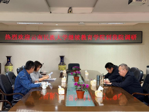 2026年3月25日上午,云南民族大学继续教育学院国家级继续教育基地办公室主任何磊一行到我院考察交流。学院相关科室负责人陈腾及周伟辉参加了交流座谈会。