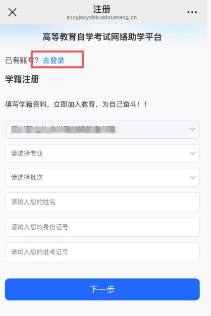 登陆网址:https://sczyjsxyxbb.wdxuetang.cn/assessmentH5/#/pages/subPagesStart/login/register?oneOrgId=10079&twoOrgId=10080
