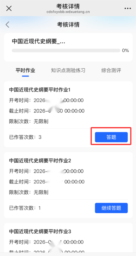 7、综合评价的四次作业、知识点测验练习和综合测评,点击【综合性评价中心】—【前往综合性评价】—点击【答题】—阅读考试须知—【人脸识别】—完成答题)—【交卷】;注意:四次作业,知识点测验练习,综合测评均需要进行人脸识别