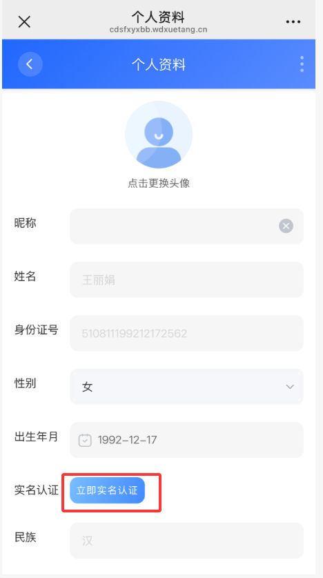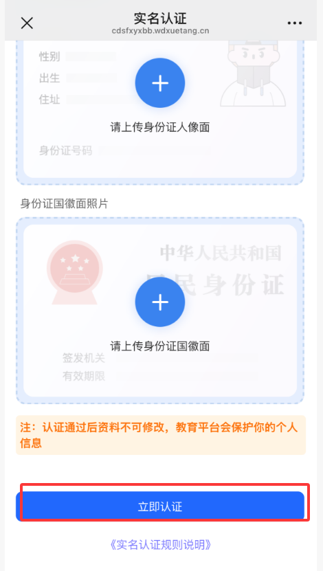 4、实名认证,点击【个人中心】找到身份证图标点击进行信息核对页面,核对信息无误后点击【实名认证】进行认证,填写姓名、身份证号码、上传照片和身份证正反照
