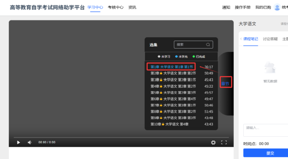 3、报名完成后在规定的时间进行视频学习,点击【学习中心】—点击【课程】进入到所报名课程的学习页面