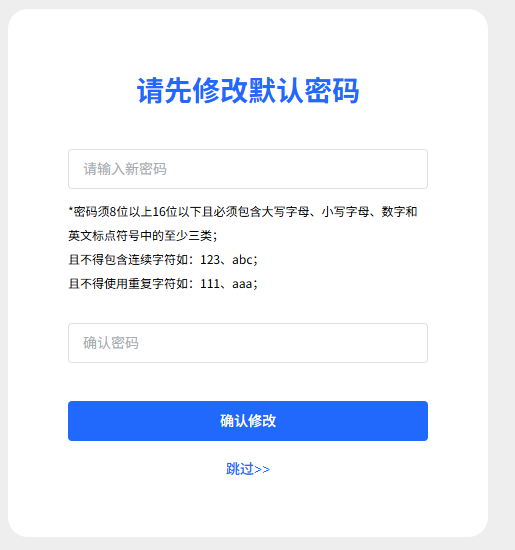 3、登录后进入到修改密码页面,按照提示修改密码,点击【确认修改】