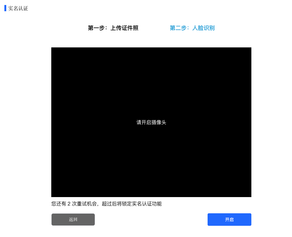 4、登录后点击头像位置,找到【实名认证】按照步骤完成认证:填写身份证号码—上传身份证正反照片—点击【下一步】—点击【开启】进行人脸识别。