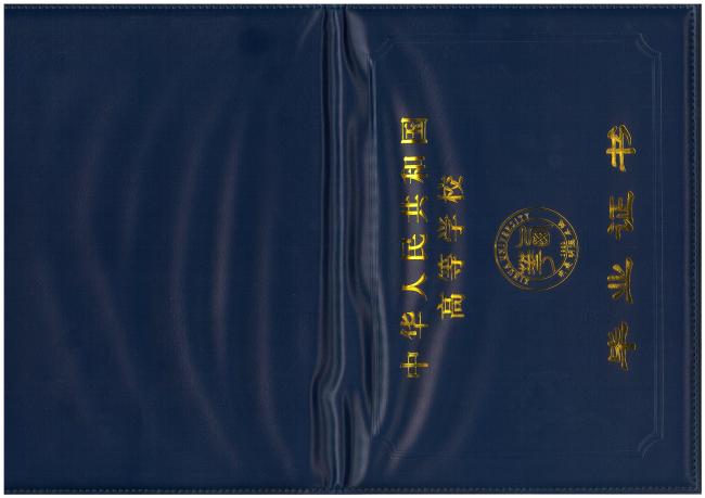 1 | 成教毕业证外壳 | 1.展开255×386mm,藏蓝色(以双方确认样品色卡为准) 参考图样: