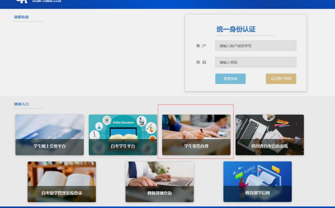 (一)进入首页右上角“西财在线入口—学生事务办理—学位申请”(网上申请须使用谷歌或火狐浏览器)