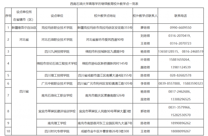 (二)校外教学点新生收到《录取通知书》后,务必根据入学须知上内容联系西南石油大学高等学历继续教育校外教学点,根据校外教学点要求至校外教学点报到。