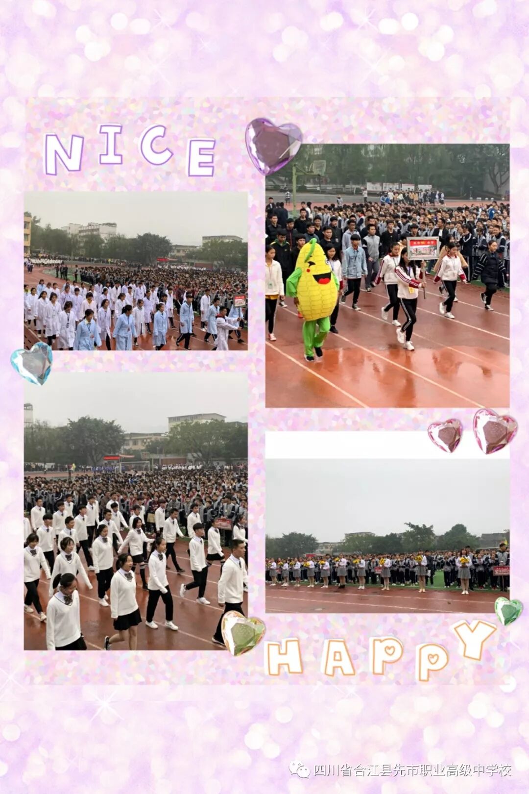 早上8点,运动会在绵绵细雨中如期举行。国旗班英姿飒爽、红旗队喜庆热烈、运动员方队青春洋溢……伴随着《运动员进行曲》的音乐,国旗护卫队、运动会展牌、彩旗方队、鲜花方队、运动员方队依次入场。 升国旗、奏国歌,全场师生肃立,在雄壮的国歌声中注视着五星红旗冉冉升起。副校长袁斌在开幕词中表示,在过去的一年里,先市职高的办学条件不断改善,社团活动精彩纷呈,全体教职工奋勇争先、积极进取、砥砺前行,为学校实现内涵发展、品质发展打下了坚实基础。“体育是力量的角逐,是智慧的较量,是美丽的展示,是理想的飞扬。”袁斌表示,希望全体运动员在比赛中,向着‘更高、更快、更强’的奥林匹克精神奋进,去追求‘我运动、我健康,我参与、我快乐’的理想”。 在肃穆庄重的氛围中,运动员代表、裁判员代表庄严宣誓,表示将遵守比赛规则,严守大会纪律,严格履行裁判员职责,做到严肃、认真、公正、准确裁决。随后,校长徐均科宣布:“合江县先市职高第三十届田径运动会正式幕!”赛场上,豪情万丈,斗志昂扬。开幕式后,本次运动会各项比赛进行得如火如荼。